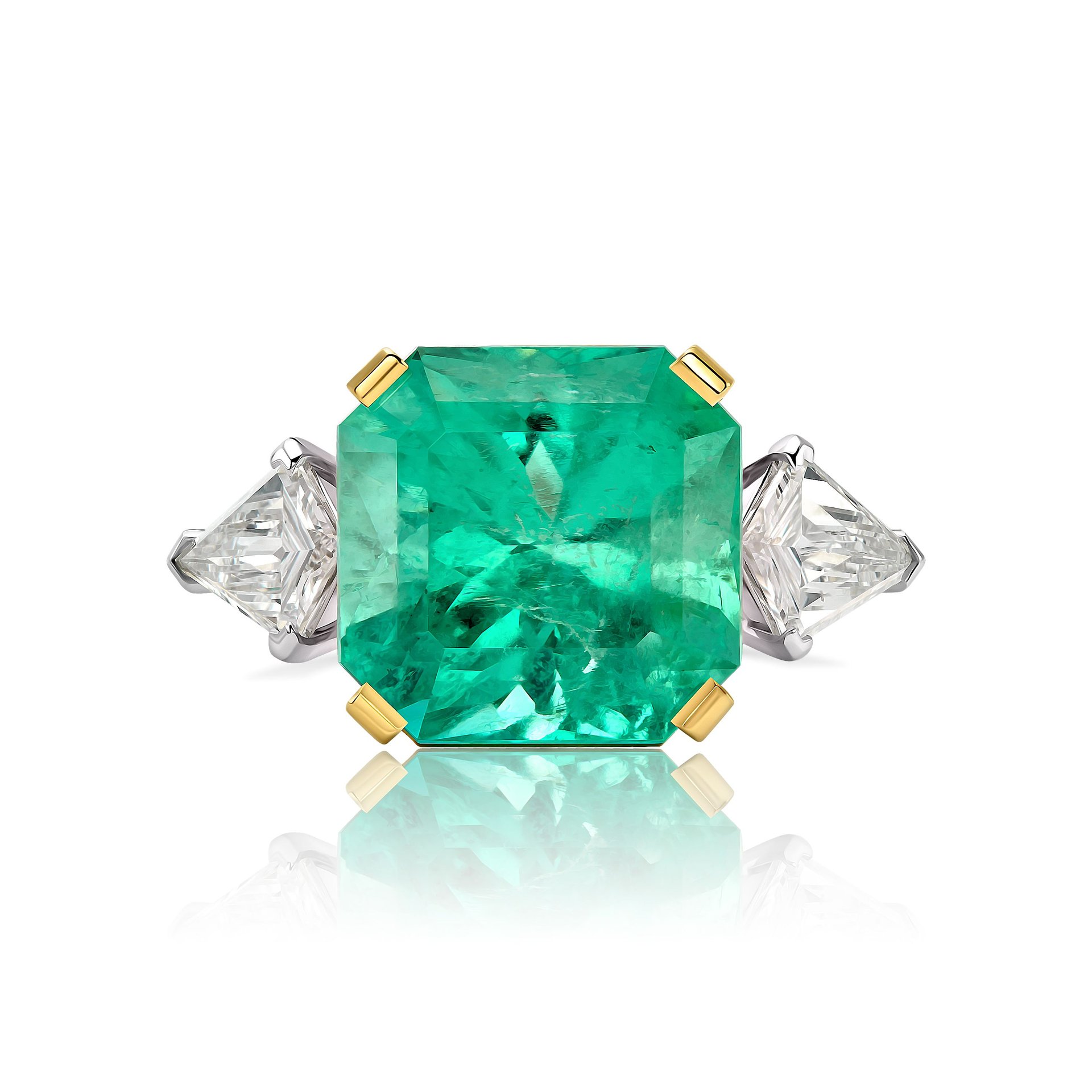 14.02 ct Colombian Emerald and Kite Diamond Ring