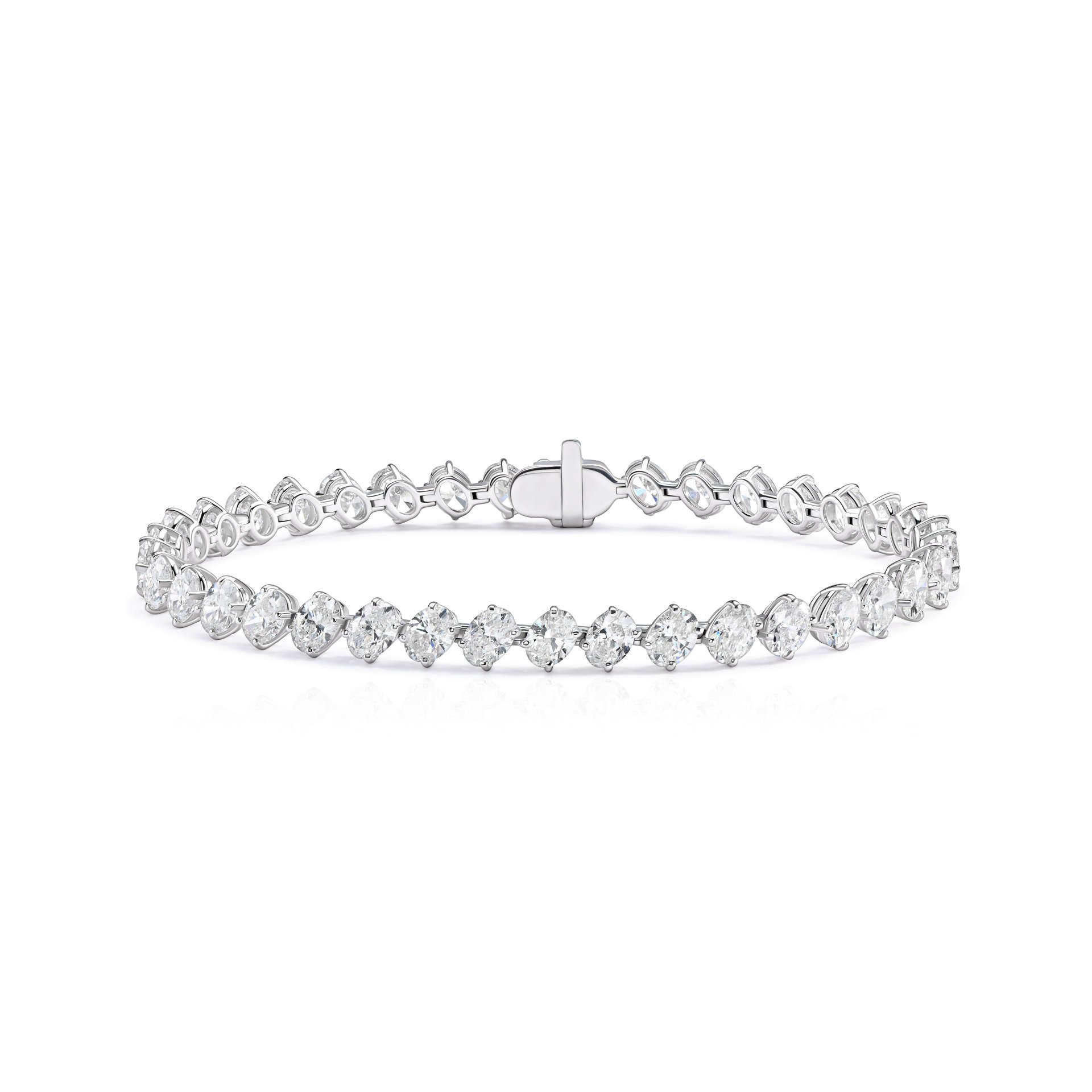 Introducing our exquisite Diamond Bracelet, featuring a total diamond weight of 8.76 carats, with each of the 37 oval-cut diamonds carefully selected for their exceptional E-F color and VS clarity. This bracelet by Jewelry design studio Parure Atelier, showcasing the perfect blend of elegance and meticulous craftsmanship. The diamonds are set in 18k white gold, creating a harmonious and luxurious look that complements the brilliance of each stone. The bracelet's overall weight and design ensure a comfortable and secure fit, making it an ideal accessory for both special occasions and everyday sophistication.