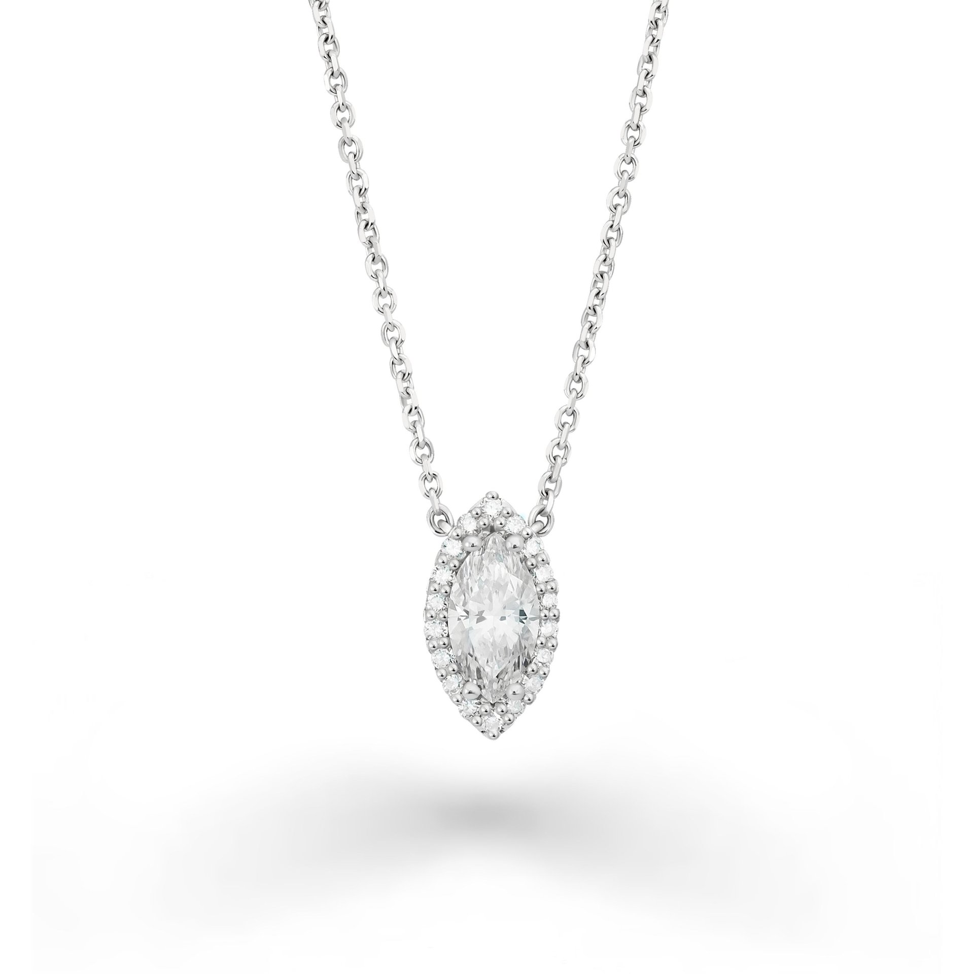 The 0.70 carat Marquise Diamond Pendant from Jewelry Design Studio Parure Atelier is a symphony of light and grace. A flawless marquise diamond of D color and VS2 clarity takes center stage, its exquisite shape designed to maximize the stone’s brilliance and fire. A cascading arrangement of round side diamonds, adding up to 0.36 carats, enhances the pendant’s elegance, creating a flowing silhouette of pure radiance. The pendant, presented on a 65 cm chain of 750-grade white gold, is a statement of classic beauty that is contemporary. A classic alliance that combines flowing purest diamonds.