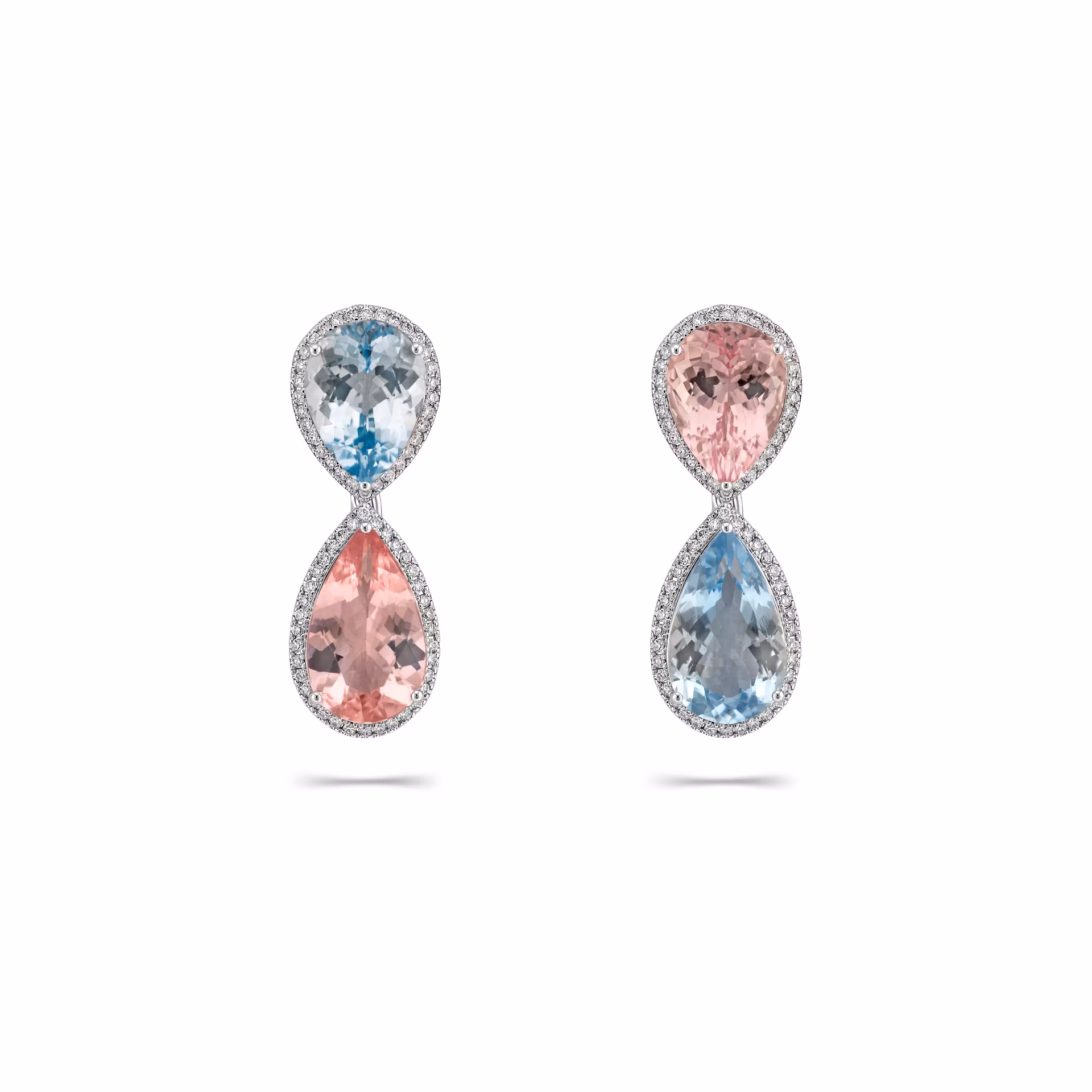Morganite 7.30 ct and Aquamarine 7.16 ct Earrings