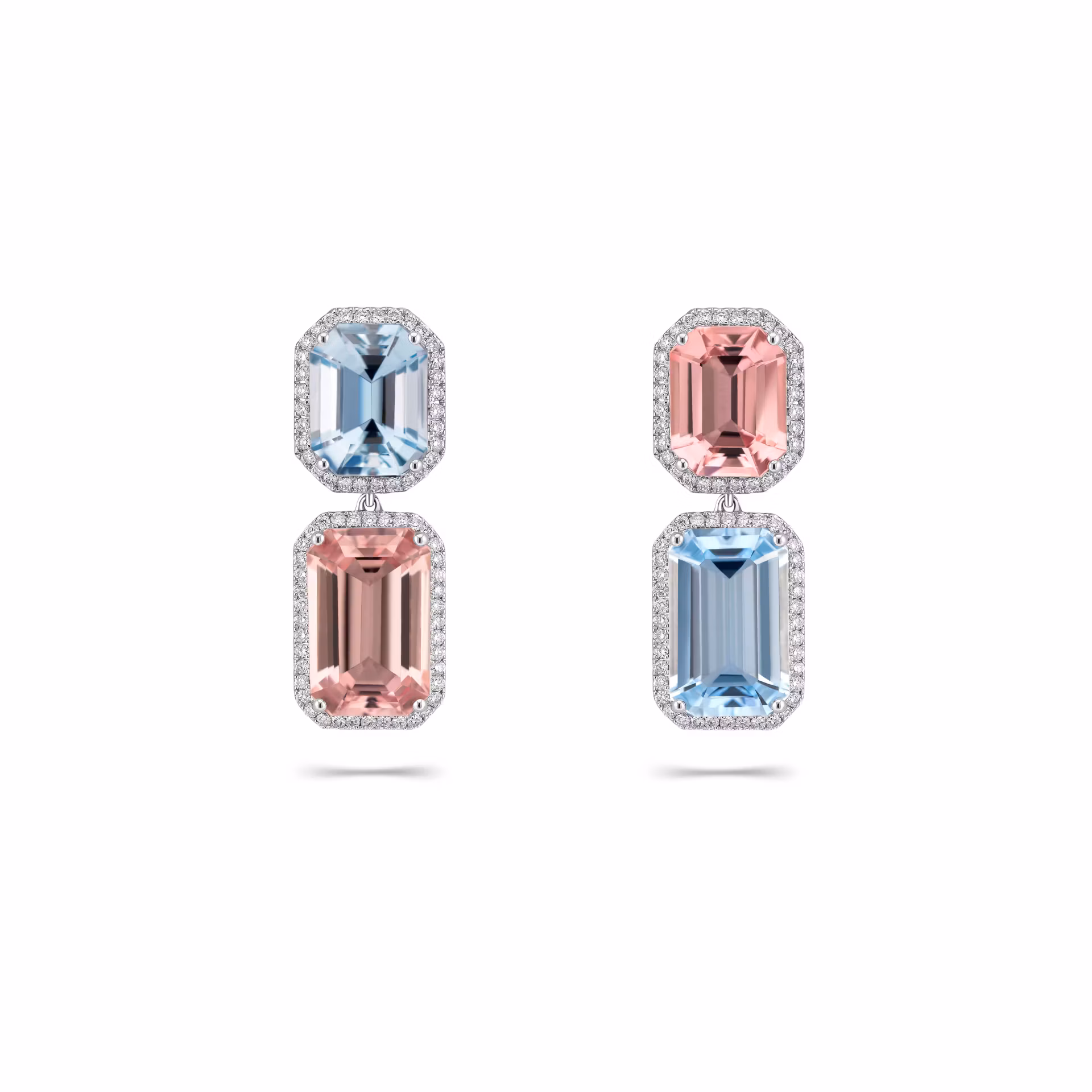 Morganite 8.18 ct and Aquamarine 8.12 ct Earrings