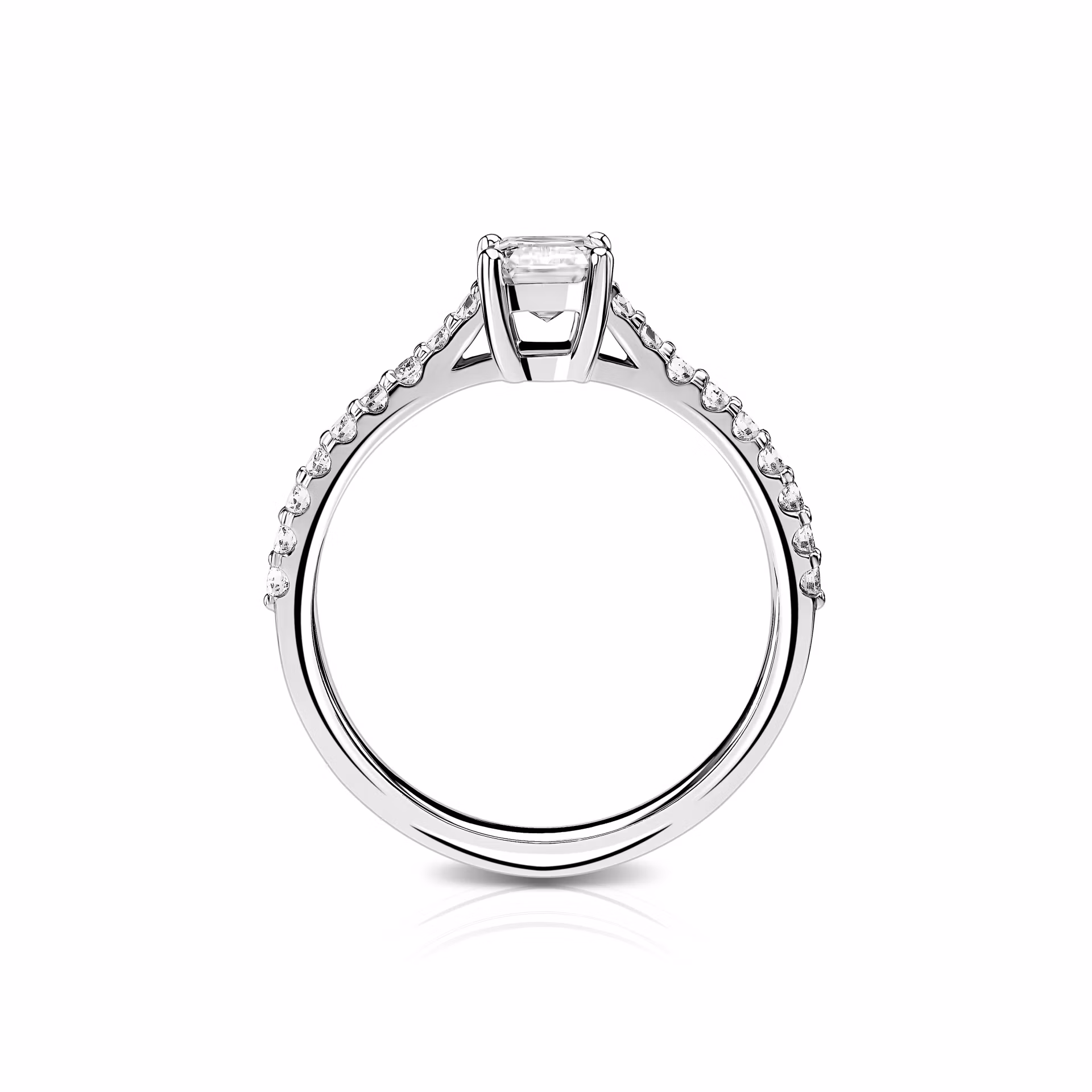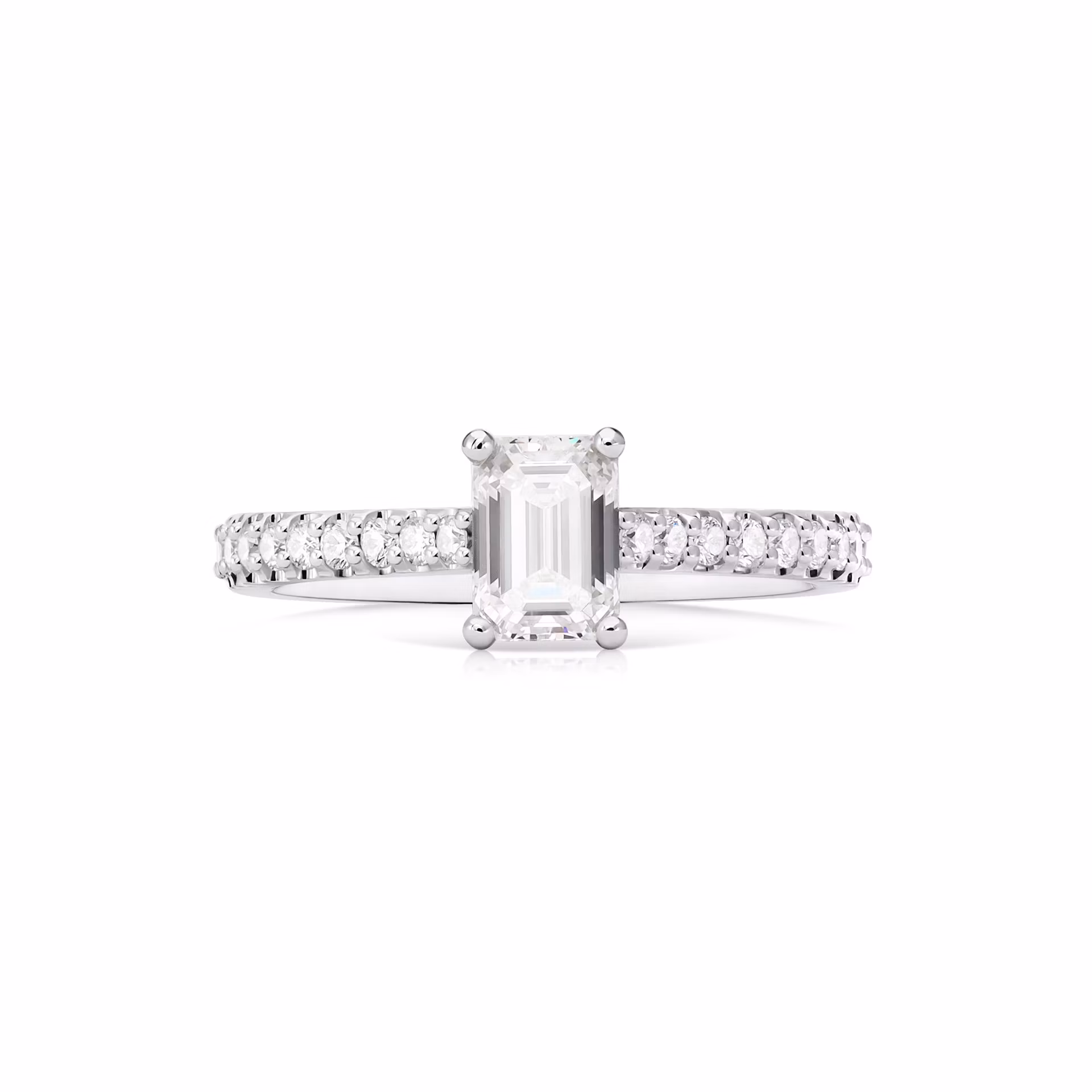 The Diamond ring from Jewelry design studio Parure Atelier features a central stone that is a testament to classic beauty and precision. At the heart of this ring is a 0.50 ct octagon-shaped diamond, boasting an F color and VS1 clarity, exuding pure brilliance. Complementing the centerpiece are sleek baguette side stones and a cascade of round diamonds, summing up to 0.188 ct, all seamlessly set in 18k white gold. This piece, with a ring size of 16.5, is crafted to highlight the diamond's clarity and the metal's sleekness, culminating in a refined design that is both modern and timeless. The ring is a perfect marriage of form and function, promising to be as enduring as the bond it symbolizes.