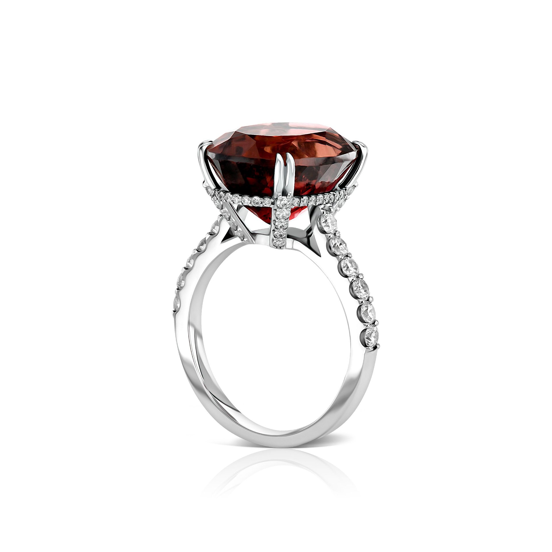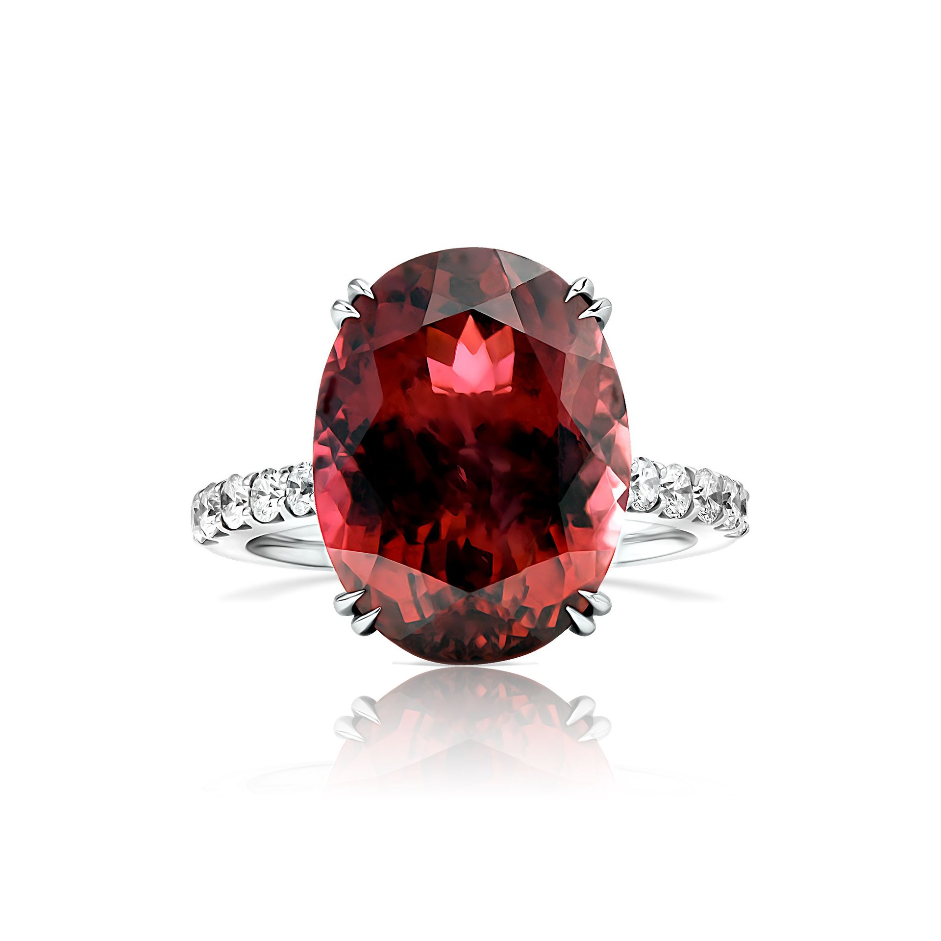 Embrace the allure of the Tourmaline ring, featuring a central stone that whispers the story of the rich berry hues. With a significant weight of 10.58 ct. The ring is graced by the natural beauty of the tourmaline, celebrated for its deep. Its striking color is complemented by a constellation of round diamonds, summing up to 0.552 ct, each one meticulously placed to cast a radiant light that enhances the gem's vibrancy. At a modest weight of 3.81 grams, the ring offers a sense of substance combined with a delicate feel on the finger, making it an ideal choice for both everyday luxury and special occasions. Parure Atelier expertise in jewelry creation is evident in the precise cut and setting of each stone. Rich berry hues leitmotiv runs through the gem.