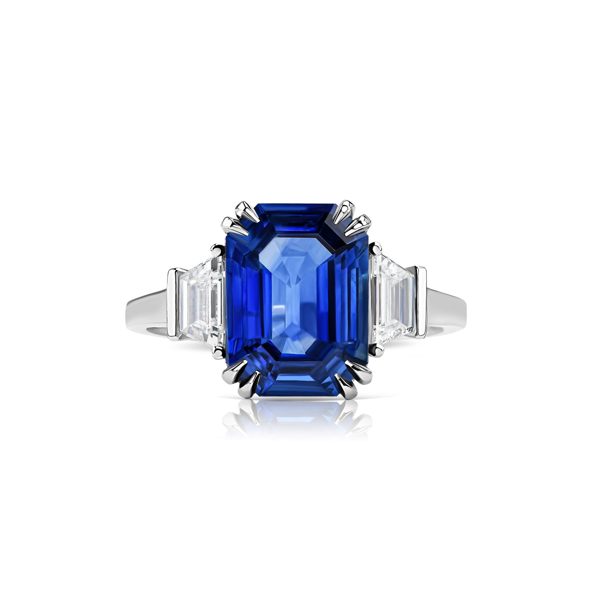 Parure Atelier presents the Sapphire Ring 4.14 ct — a marvel of design that radiates with the deep, enigmatic tones of the midnight sky. Centered around an 4.14 carat sapphire in an octagon cut. The blue sapphire is perfectly complemented by the sleek of 18k white gold, and the design is elevated with the addition of 0.46 carats of trapezoid-shaped diamonds. These side stones are precision-cut to flank the central sapphire, enhancing its natural brilliance and deep blue hue. Weighing 4.43 grams and sized at 16.5, this ring balances poise and comfort. This piece captures the essence of classic elegance, perfect for the woman who appreciates the fusion of traditional style and contemporary design. It’s a ring that promises to become a treasured part of any jewelry collection.