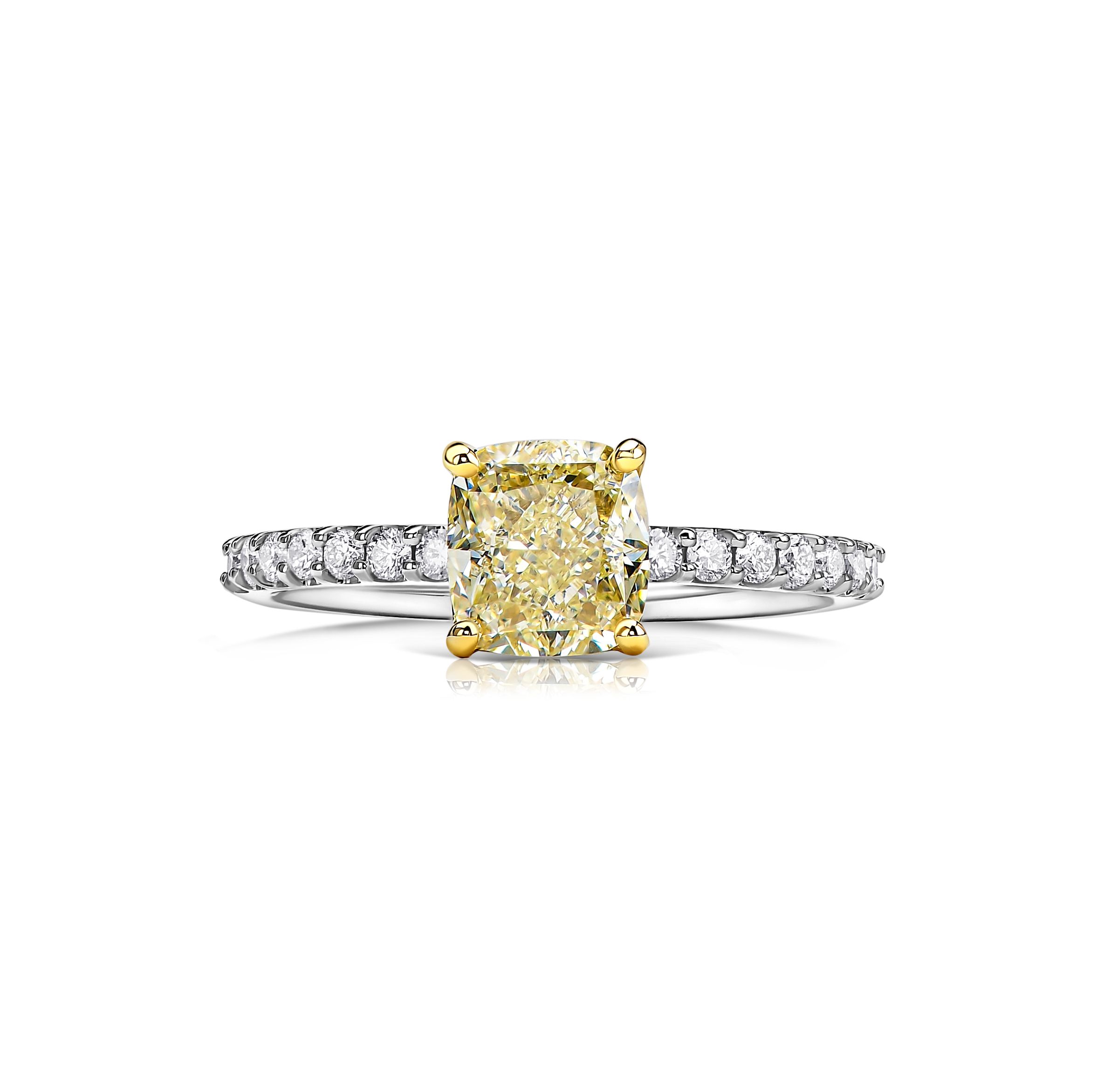 1.01 ct Cushion Cut Yellow Diamond Ring